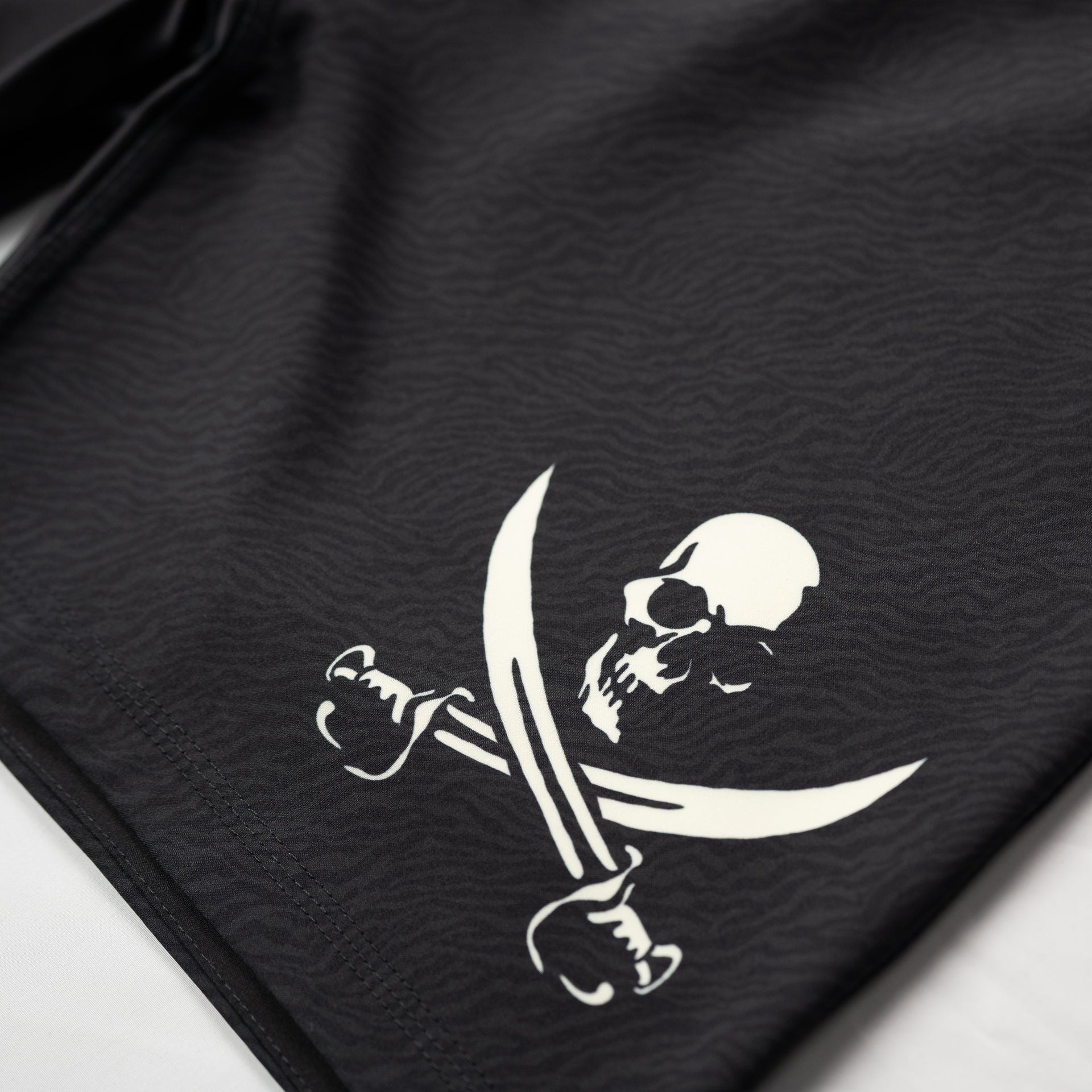 フロント : ダブルネームロゴ 、 BELLUMのブランドアイコンであるジョリー・ロジャーの海賊旗をモチーフに製作したオリジナルスカルロゴ